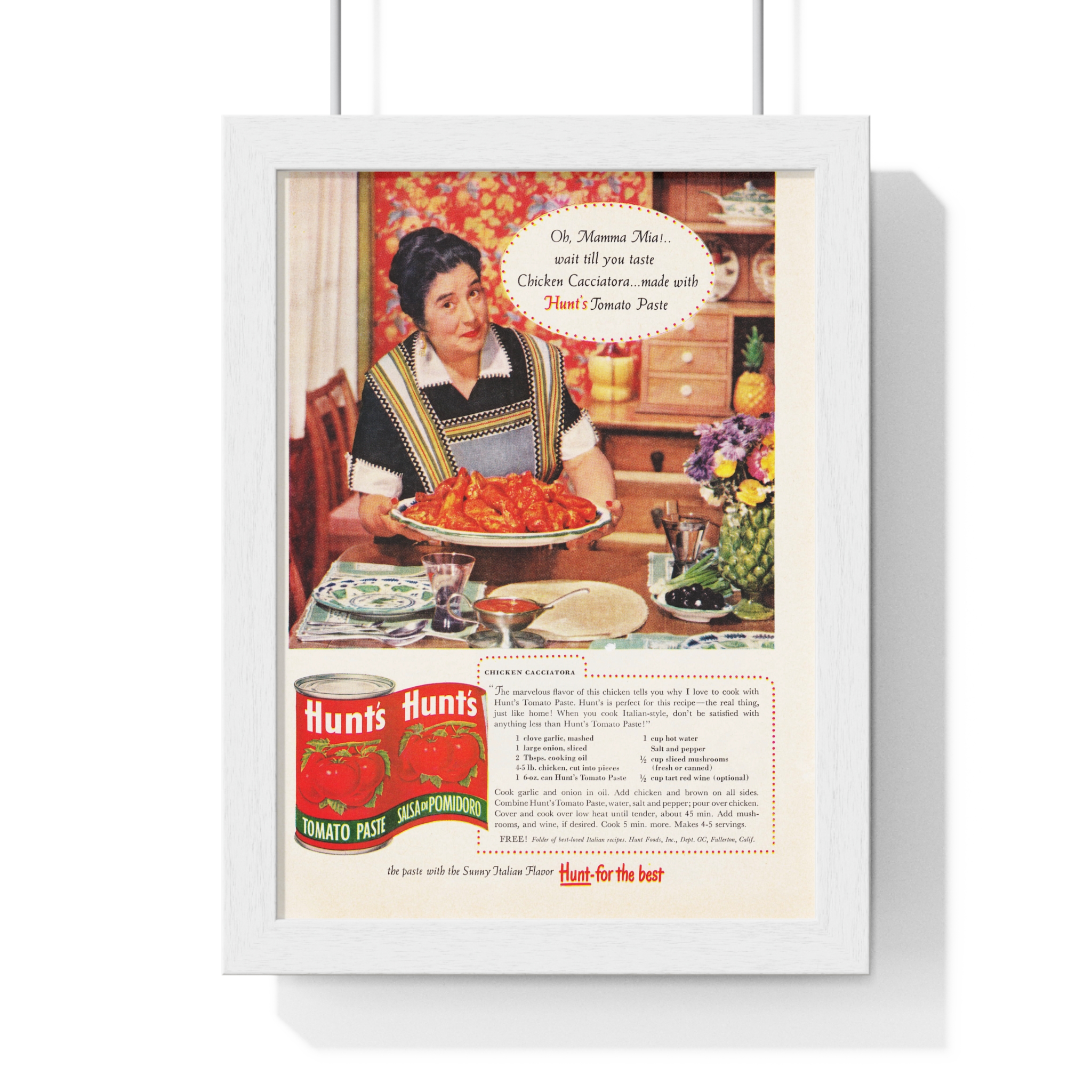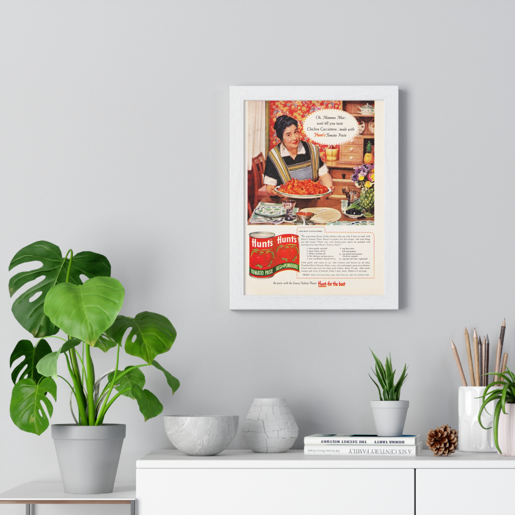 1956 Hunt’s Oh, Mamma Mia!… Chicken Cacciatora – Vertical Framed Poster
